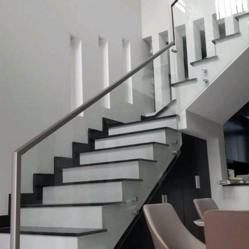 Tay vịn gỗ kết hợp kính mang đến sự hài hòa, vừa hiện đại vừa ấm cúng, thích hợp nhà phố, biệt thự cao cấp.